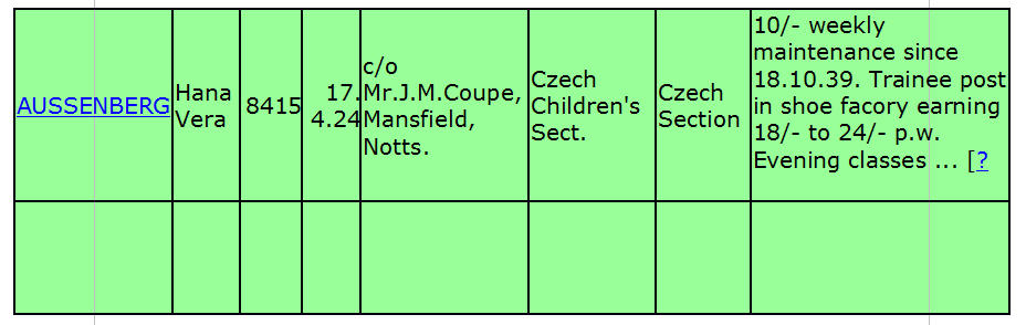 Originál a přepis z Wintonovy knihy se jménem HANA Vera Aussenberg